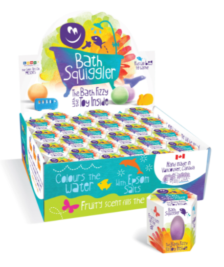 Fill the bath and simply drop in a Bath Squiggler™ and watch as it colours the water while scenting the air with a fruity fragrance. As the Squiggler dissolves, out pops a cute sponge character. And they won't stain your bath! (or your children!!).