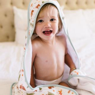 - Size: 32” x 32” (hooded towel); 12” x 12” (washcloth)