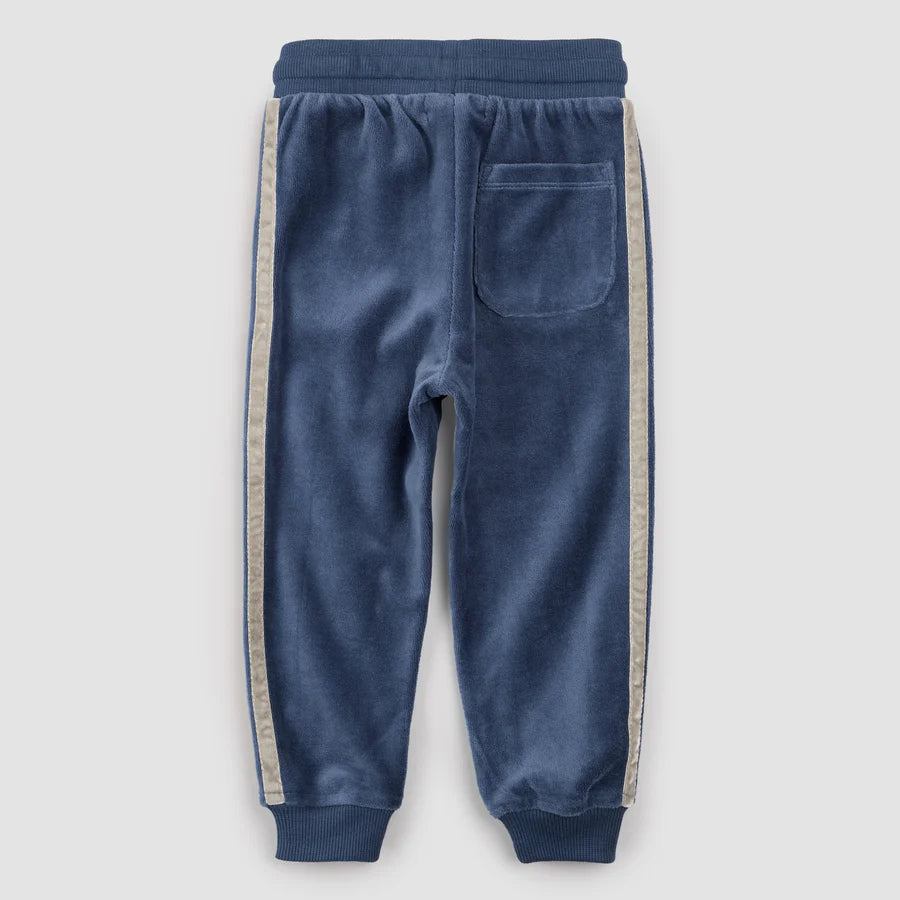 Miles The Label - Blue Velour Jogger with Retro Stripe