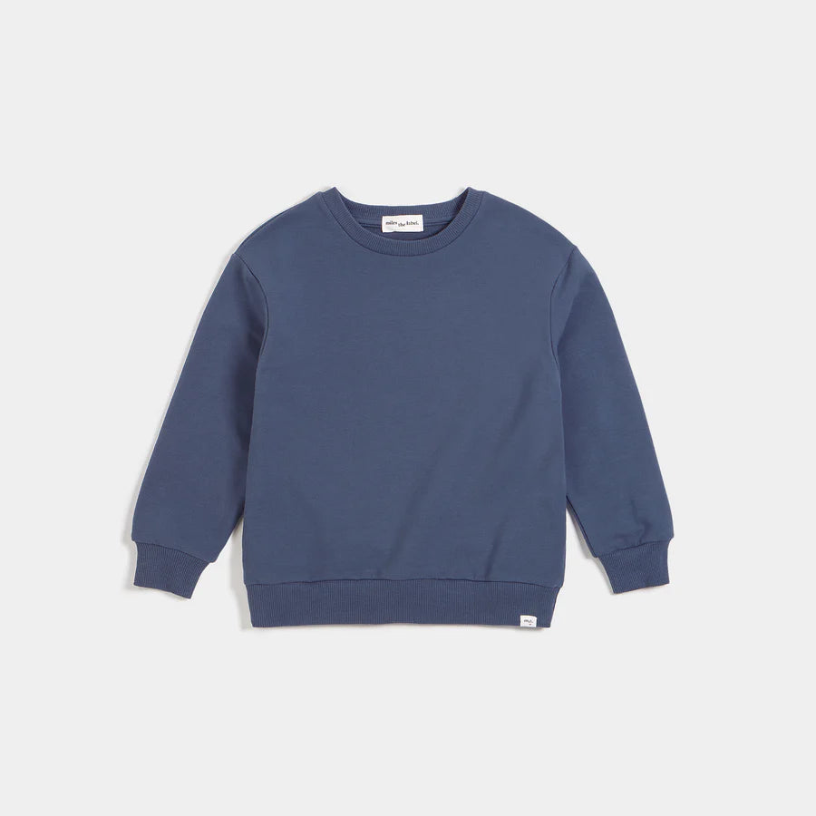 The Miles Basic Sweater in Vintage Blue is easy to wear and pull on over t-shirts or joggers. Available in a whole range of seasonal colors, the sweaters and matching pieces can be combined to create an endless selection of comfy outfit combos.