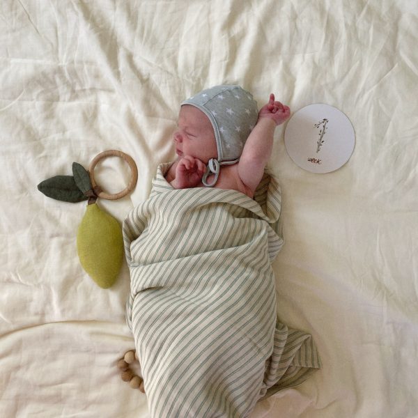Mushie Muslin Swaddle Blanket Organic Cotton Sage Stripe