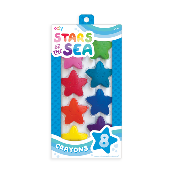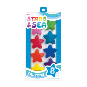 The Stars of the Sea crayon set celebrates the incredible beauty of the starfish filled oceans. This super cute and colorful set features 8 starfish shaped, chunky wax crayons that are perfect for little hands to color with.