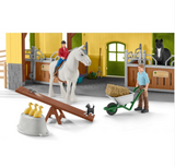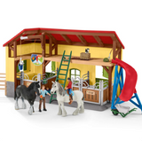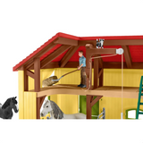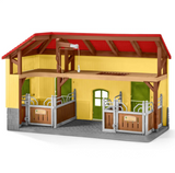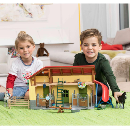 The colourful horse stable boasts lots of fun features and provides endless fun for little ones! With 7 cute animals, 2 horse boxes, farmers Paul and Laura and lots of accessories, it is easy to reproduce the daily work on the farm.