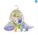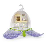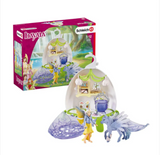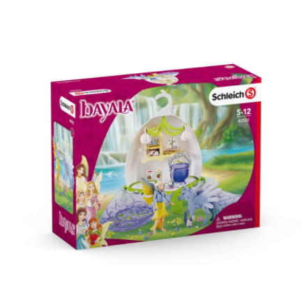 The new Magical Vet Blossom from Schleich® bayala® is perfect for fairy vet Sera. When she opens the flower, first she puts on her nurse's cap and hangs her stethoscope around her neck so she can examine her patients. Then she brews healing medicines out of mushrooms in her cauldron, stirring with her ladle. Office hours can now begin. In the cupboard, Sera has two flower bandages, a syringe and colorful bandage stickers just in case. She has made the vet flower extra pretty with a nice paper lantern and a flower garland so that everyone will feel at ease. Her hard-working assistant is the purple Pegasus foal with the beautiful crystal wings. Because its eyesight isn't so good, Sera has cute glasses for the little foal. The two of them like to decorate the magic vet flower with colorful stickers that can be used again and again. At the end of the day, Sera just closes the flower – until the next time she opens.