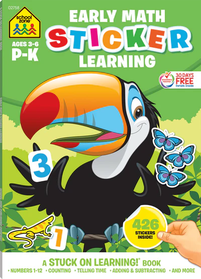 “Stuck On Learning” series of books use sticker activities to introduce children to important readiness skills. Kids place stickers to complete the activities. 64-page workbook