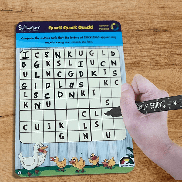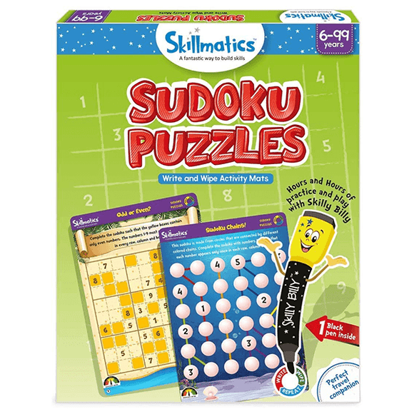 Sudoku Puzzles are a fantastic way to build logic and problem-solving skills! 12 highly engaging and repeatable sudoku puzzles which build core skills through fun learning methodologies. Suitable for all ages, this educational game is filled with super fun activities that will test your mind and keep you engaged for hours at end! A great travel companion, this product promises hours of fun with family and friends!